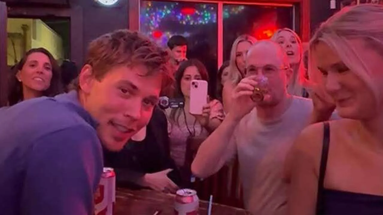 Austin Butler serving drinks a Dirty Bills in Austin